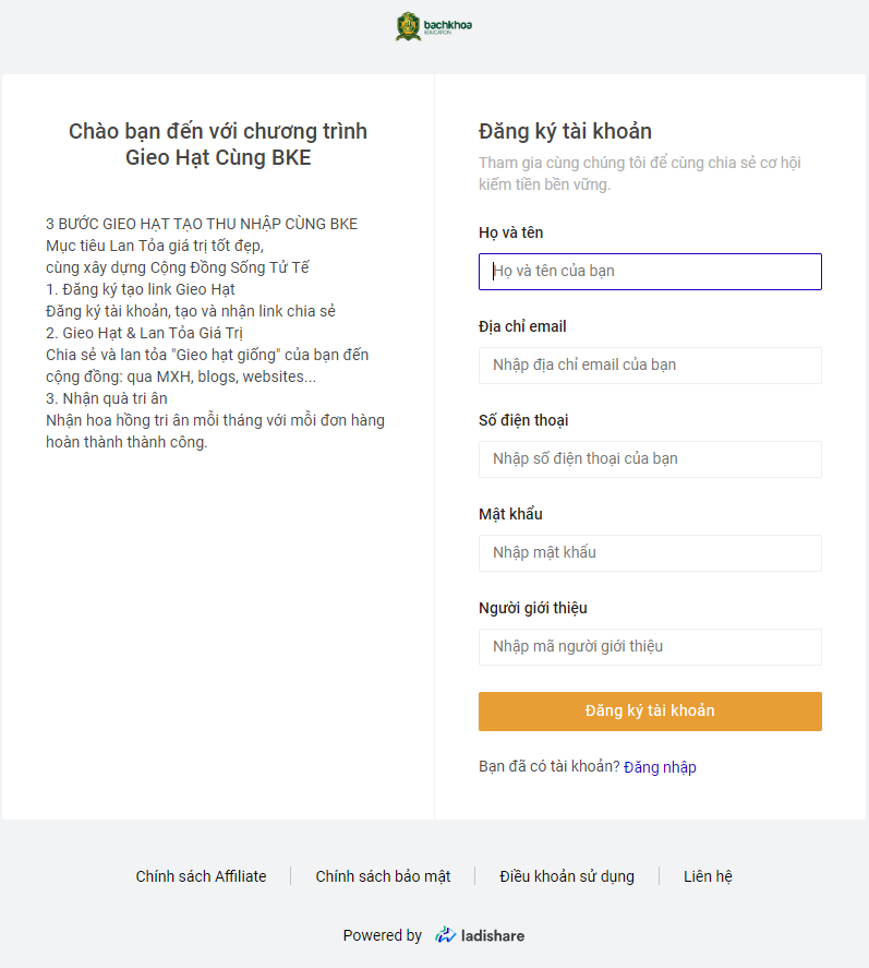 # Đăng ký Gieo Hạt Cùng BKE