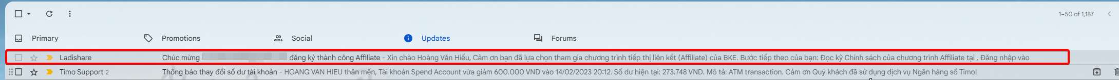 Kiểm tra email thông báo đăng ký thành công
